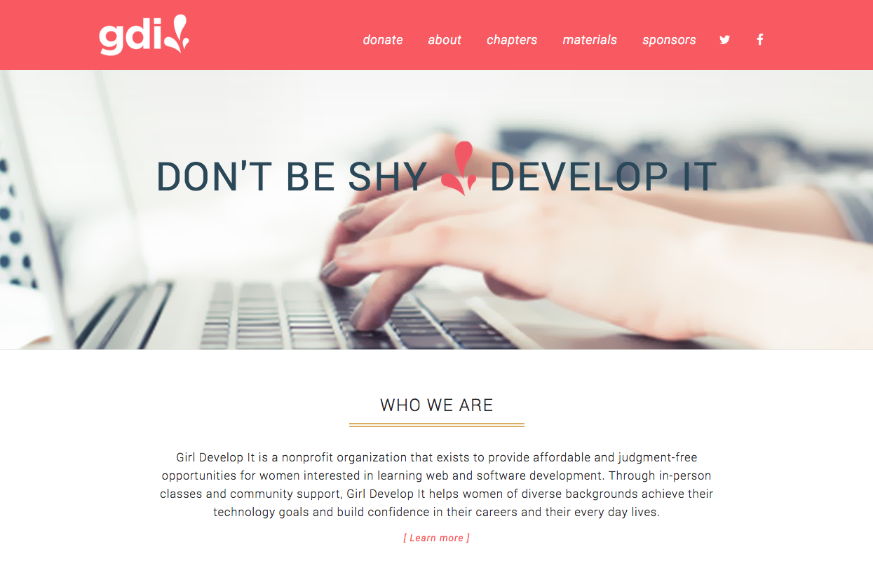 Girl Develop It is here to provide affordable and accessible programs to learn software through mentorship and hands-on instruction.